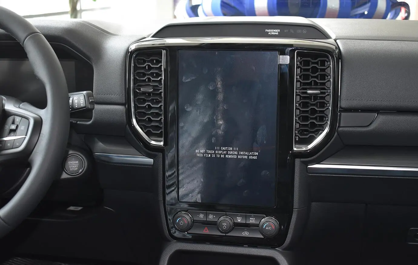Nội thất Ford Everest Ambiente 2.0L Turbo đơn 6AT 4×2 có điểm thay đổi lớn nhất ở bảng điều khiển trung tâm và táp-lô. Cụ thể, Ford đi theo phong cách giống nhiều hãng hiện nay, sử dụng màn hình trung tâm to như một máy tính bảng dựng dọc, kích thước 10 inch. Thiết kế màn hình người lái cũng khá to với 8 inch.