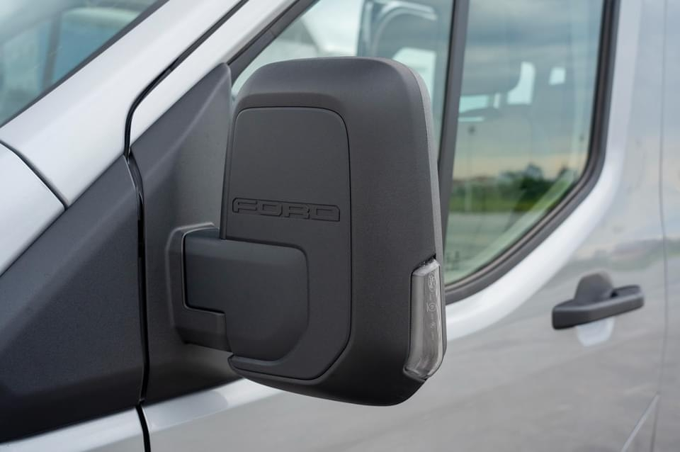 Gương chiếu hậu củaFord Transit 2025được thiết kế lớn với tầm quan sát rộng và điều khiển điện.