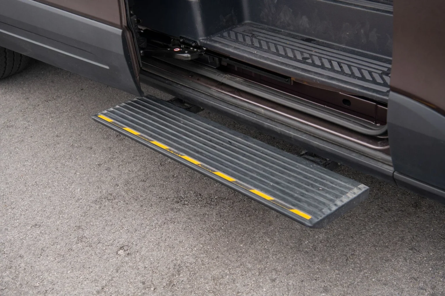 Cửa điện mở rộng hơn so với phiên bản tiền nhiệm, đi kèm bậc bước chân giúp hành khách lên xuống xe dễ dàng và thuận tiện, ngay cả khi mang theo hành lý cồng kềnh. Nút bấm điều khiển cửa điện được gắn trên khung cửa hoặc từ vị trí người lái.