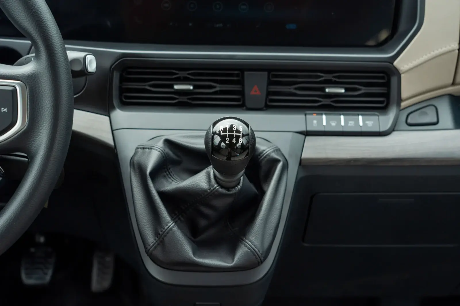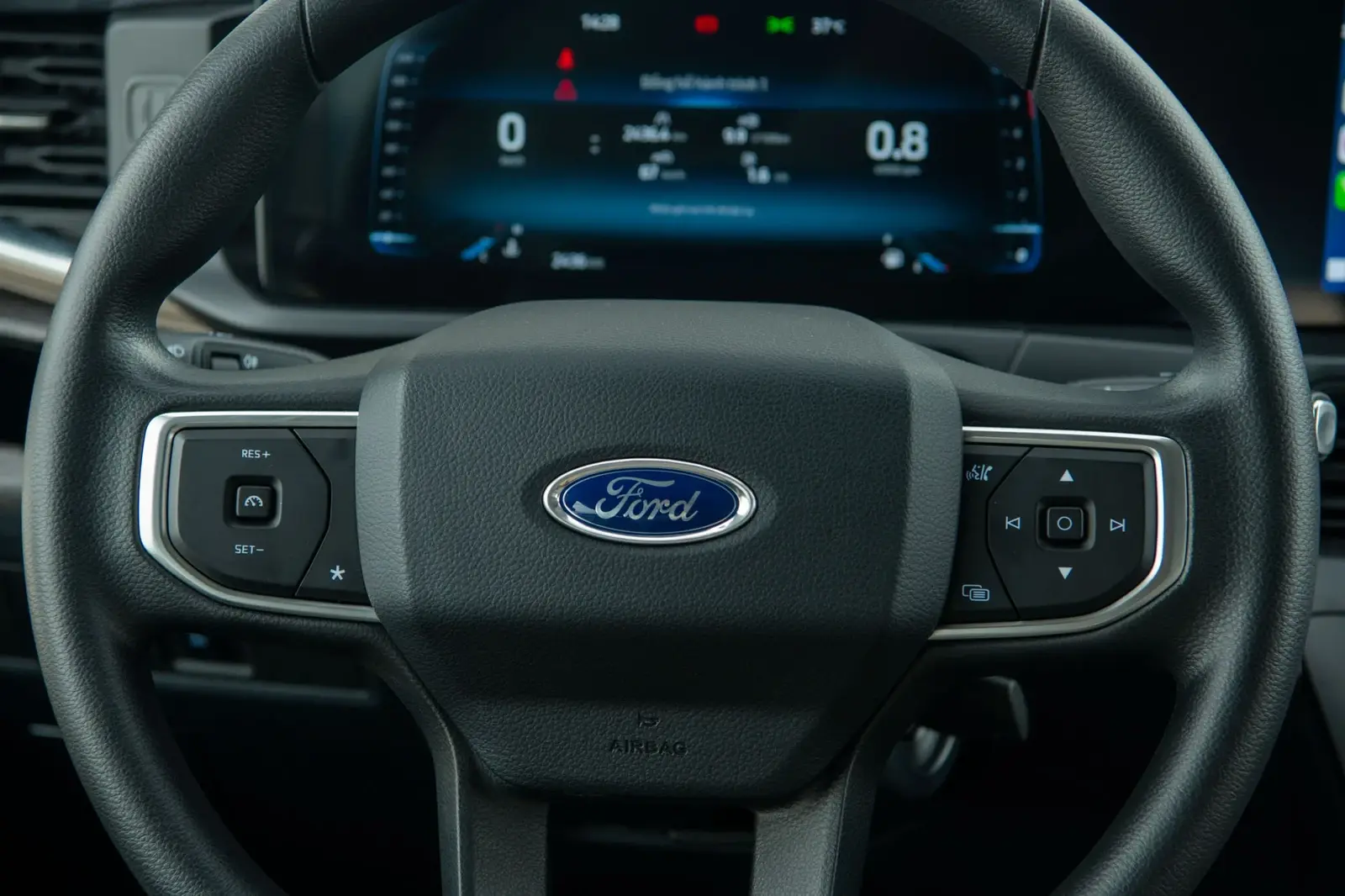 Vô lăng củaFord Transit 2025được bọc da cao cấp và tích hợp nhiều phím chức năng điều khiển hệ thống giải trí, bao gồm cả hệ thống kiểm soát hành trình.
